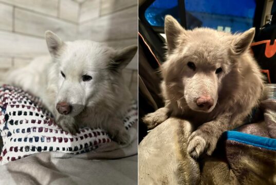 W Trzemżalu znaleziono błąkającego się białego, puchatego psa w typie samojeda. Zwierzę było wyraźnie zdezorientowane i wyczerpane – według zgłoszenia wcześniej kręciło się w kółko, a w momencie przyjazdu osób interweniujących leżało już zmęczone....