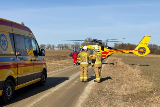 Wypadek w Jankowie Dolnym. Ranną zabrał śmigłowiec LPR.