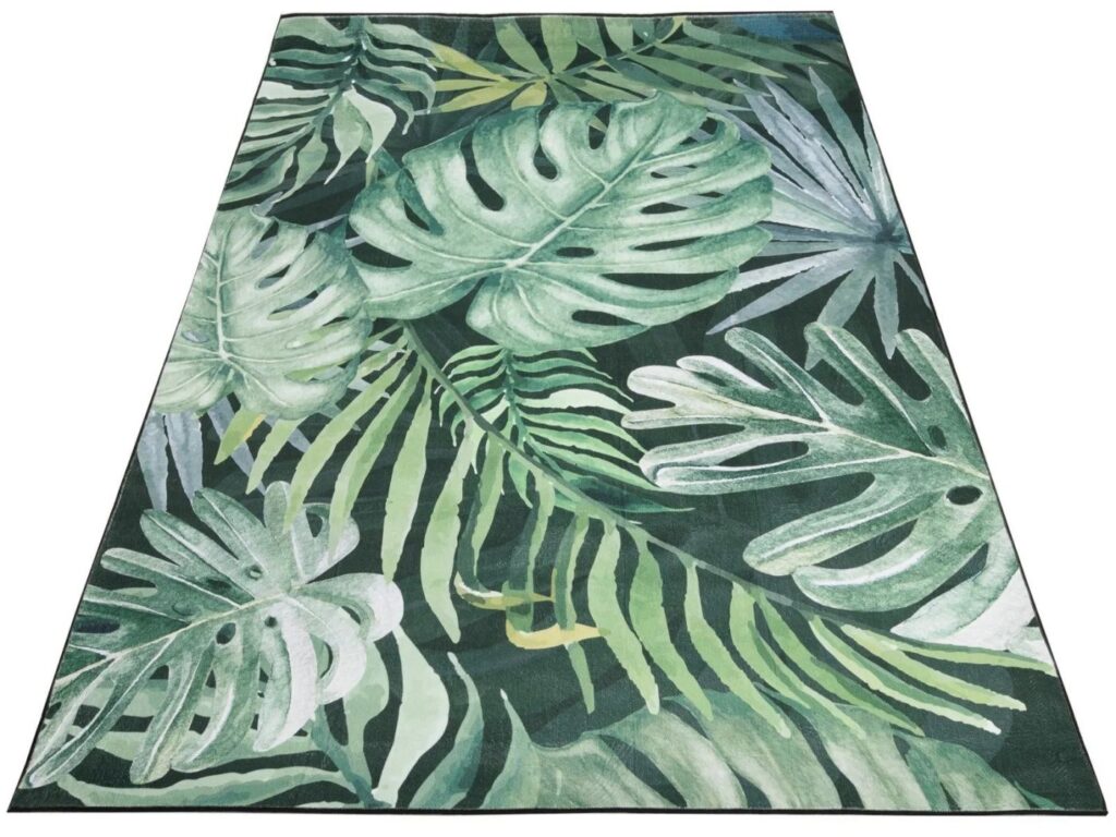 Dywan Filadelfia 7289 wnosi do wnętrza powiew natury i tropikalnej energii. Dominuje tu głęboka, butelkowa zieleń, na której wyróżniają się jasnozielone liście monstery. Subtelne odcienie szaro-zielonego i bieli dodają lekkości, tworząc efekt bujnej dżungli pełnej harmonii.