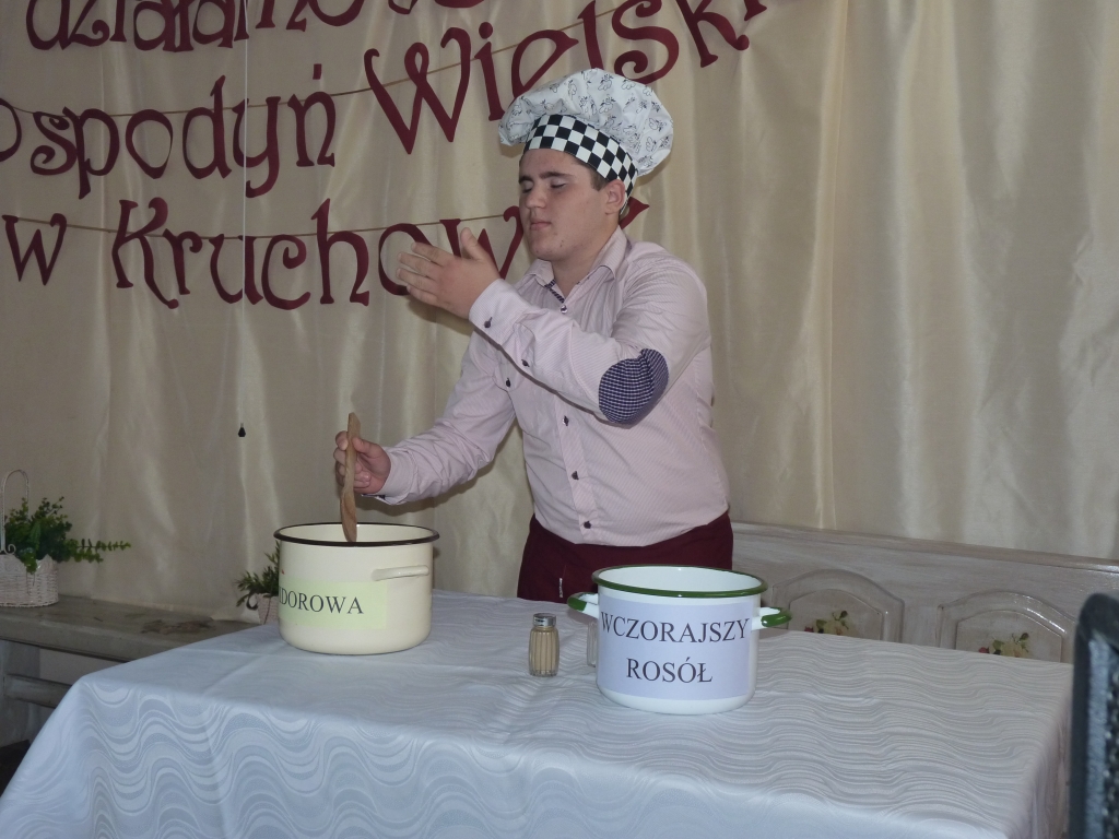 Przed publicznością wystąpiły dzieci ze Szkoły Podstawowej w Kruchowie, które zaprezentowały program artystyczny. Przewodnicząca koła Maria Dłutkowska przedstawiła natomiast historię 65 letniej organizacji. Jak mówiła, początki KGW były trudne. Koło nie posiadało swojego lokum, a członkinie spotykały się w swoich mieszkaniach. Organizowały tam m.in. kursy gotowania i pieczenia.