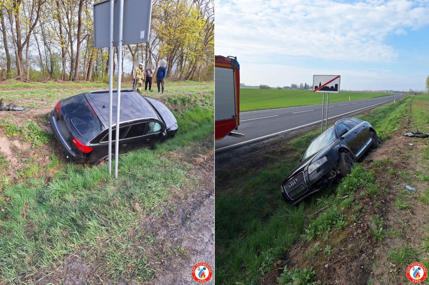 25-letni mężczyzna, kierujący samochodem osobowym marki Audi, zjechał z jezdni i wjechał do przydrożnego rowu. Jak wynika z nieoficjalnych informacji, mógł zasnąć za kierownicą.
