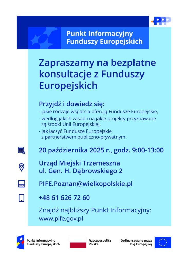Więcej informacji można uzyskać pod adresem e-mail: PIFE.Poznan@wielkopolskie.pl lub telefonicznie pod numerem 61-626-72-60. Szczegóły dostępne są również na stronie www.pife.gov.pl.