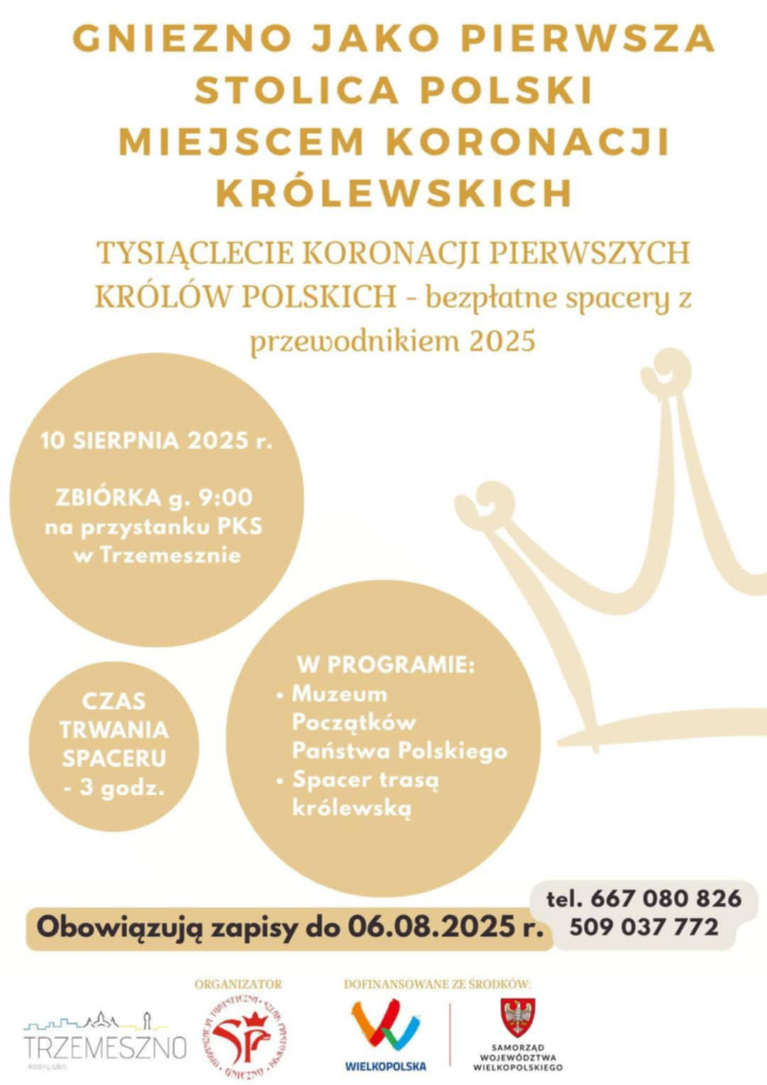 Rok 2025 to wyjątkowy czas – obchodzimy tysiąclecie koronacji pierwszych królów Polski, a Gniezno, jako pierwsza stolica państwa polskiego i miejsce historycznych koronacji, ponownie staje się centrum jubileuszowych wydarzeń. Z tej okazji Gmina Trzemeszno zaprasza mieszkańców na bezpłatny spacer historyczny z przewodnikiem, który odbędzie się już 10 sierpnia (w niedzielę).