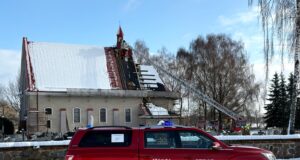 Pożar wieżyczki kościoła w Kruchowie