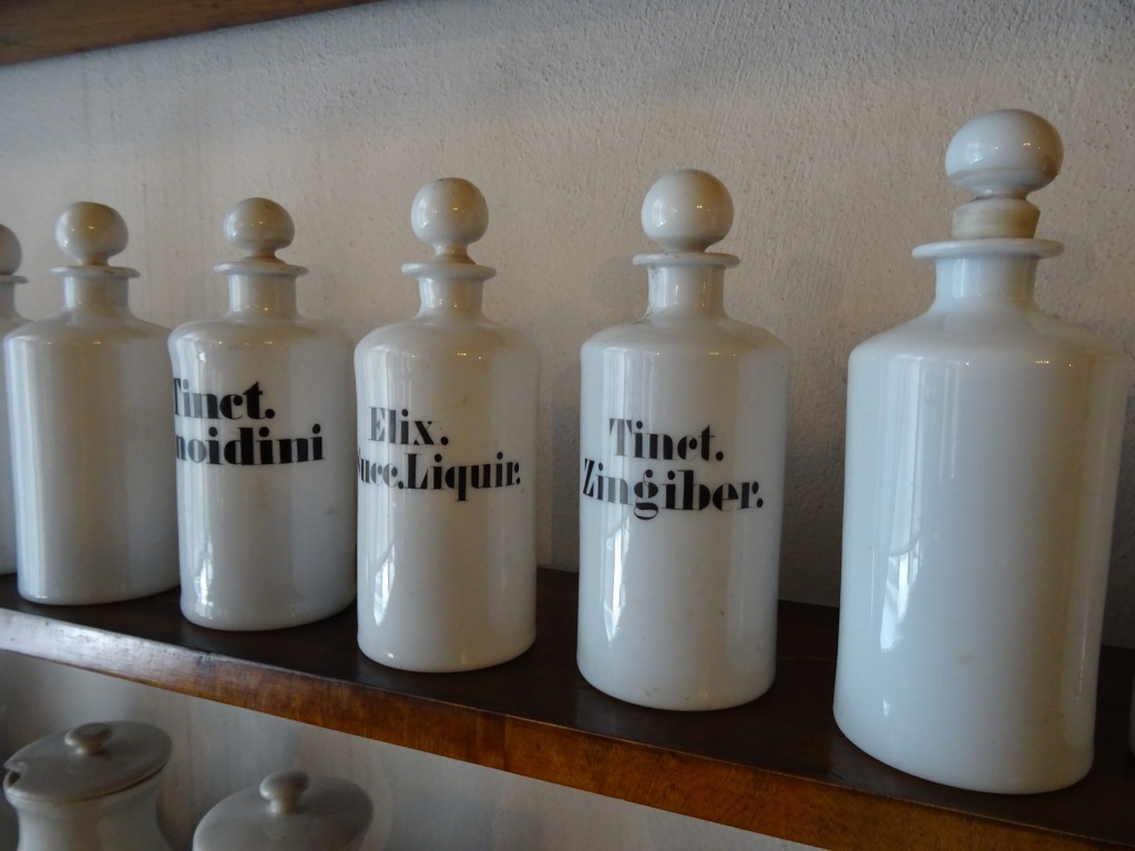 Zajrzeliśmy również (i zachwyciliśmy się) właśnie zbiorami Muzeum Farmacji, w tym w/w regałami, których pochodzenie nie było jednak opisane…