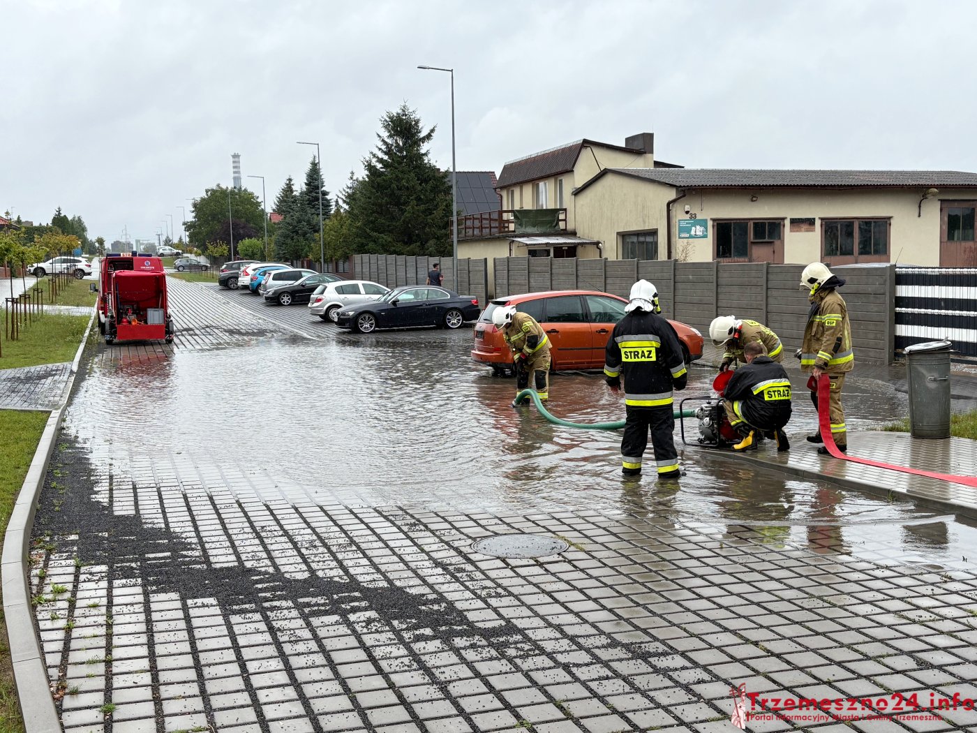 Strażacy z OSP w Trzemesznie interweniowali wczoraj przy zalanej piwnicy na ulicy Dworcowej, ale także przy wypompowywaniu wody z ulicy Jaśminowej. Ulica ta przeszła gruntowny remont w minionych latach. Posiada zainstalowane tzw. „studnie chłonne”, które – jak widać – nie sprawdzają się przy tak dużych opadach.