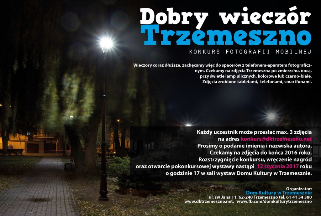 Ostatniego dnia grudnia mija termin nadsyłania prac w konkursie „Dobry wieczór Trzemeszno”, organizowanym przez miejscowy Dom Kultury. Zasady są proste – należy przesłać maksymalnie 3 fotografie wykonane telefonem komórkowym, przedstawiające nasze miasto w nocy.