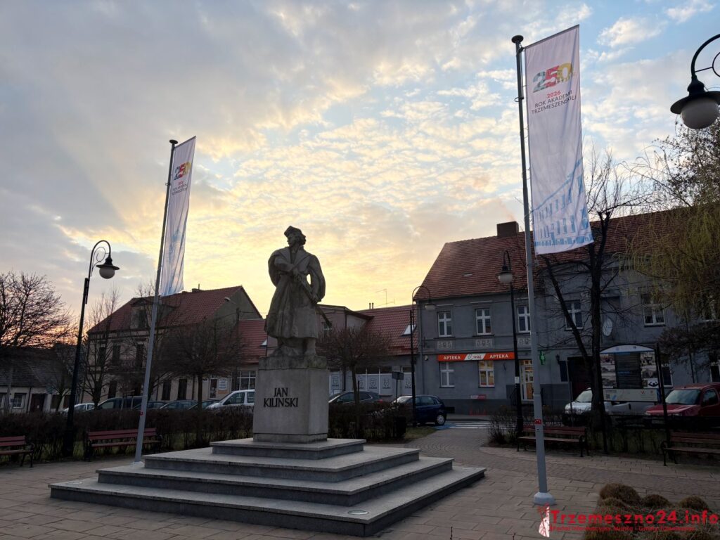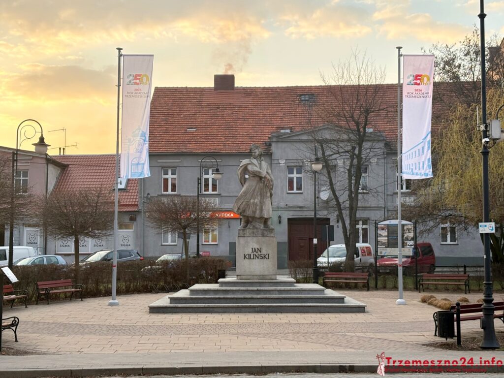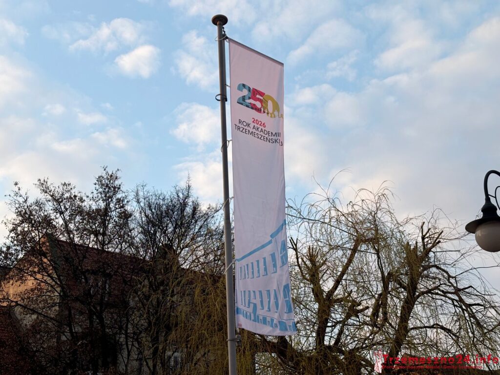 Na placu im. Jana Kilińskiego w Trzemesznie pojawił się dziś nowy akcent. Mowa o flagach promujących Rok Akademii Trzemeszeńskiej, które zawisły w centralnej części miasta. To kolejny element budowania atmosfery wokół 250. rocznicy powołania tej instytucji.
