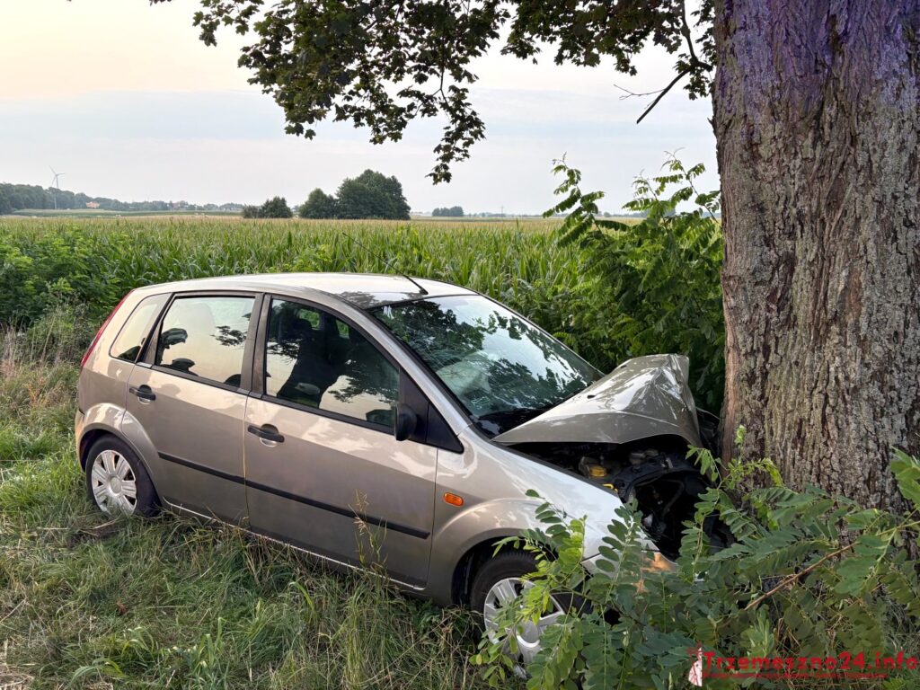 Kierujący (lub kierująca) fordem fiesta, jadąc od strony Orchowa w kierunku Trzemeszna, zjechał na przeciwległy pas jezdni i uderzył w przydrożne drzewo. Osoba oddaliła się – w momencie dojazdu pierwszych służb, w samochodzie nikogo nie było.