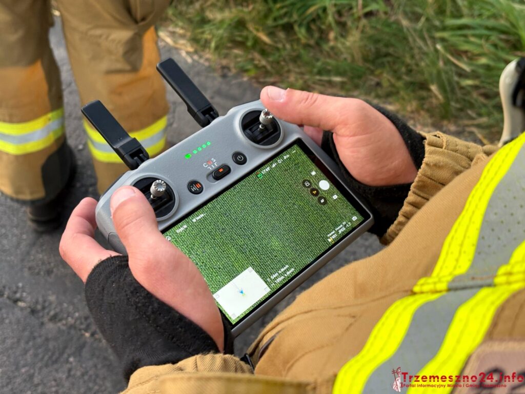 Strażacy – przy pomocy drona – sprawdzali okoliczny teren, nikogo nie napotkano.