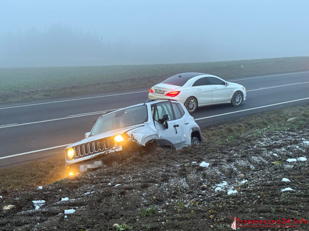 Jak wynika z nieoficjalnych informacji, kierująca samochodem marki Hyundai – na łuku drogi – zjechała na przeciwległy pas i uderzyła w barierkę energochłonną. Nadjeżdżający z przeciwka Jeep chcąc uniknąć zderzenia wjechał w przydrożną skarpę.