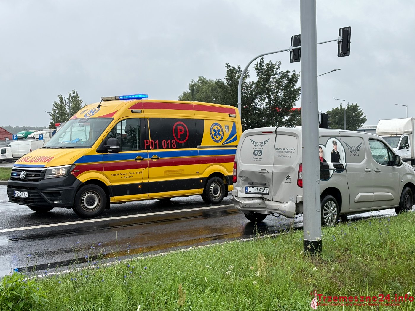 Na miejsce skierowano strażaków z OSP w Trzemesznie, pogotowie ratunkowe oraz policję.