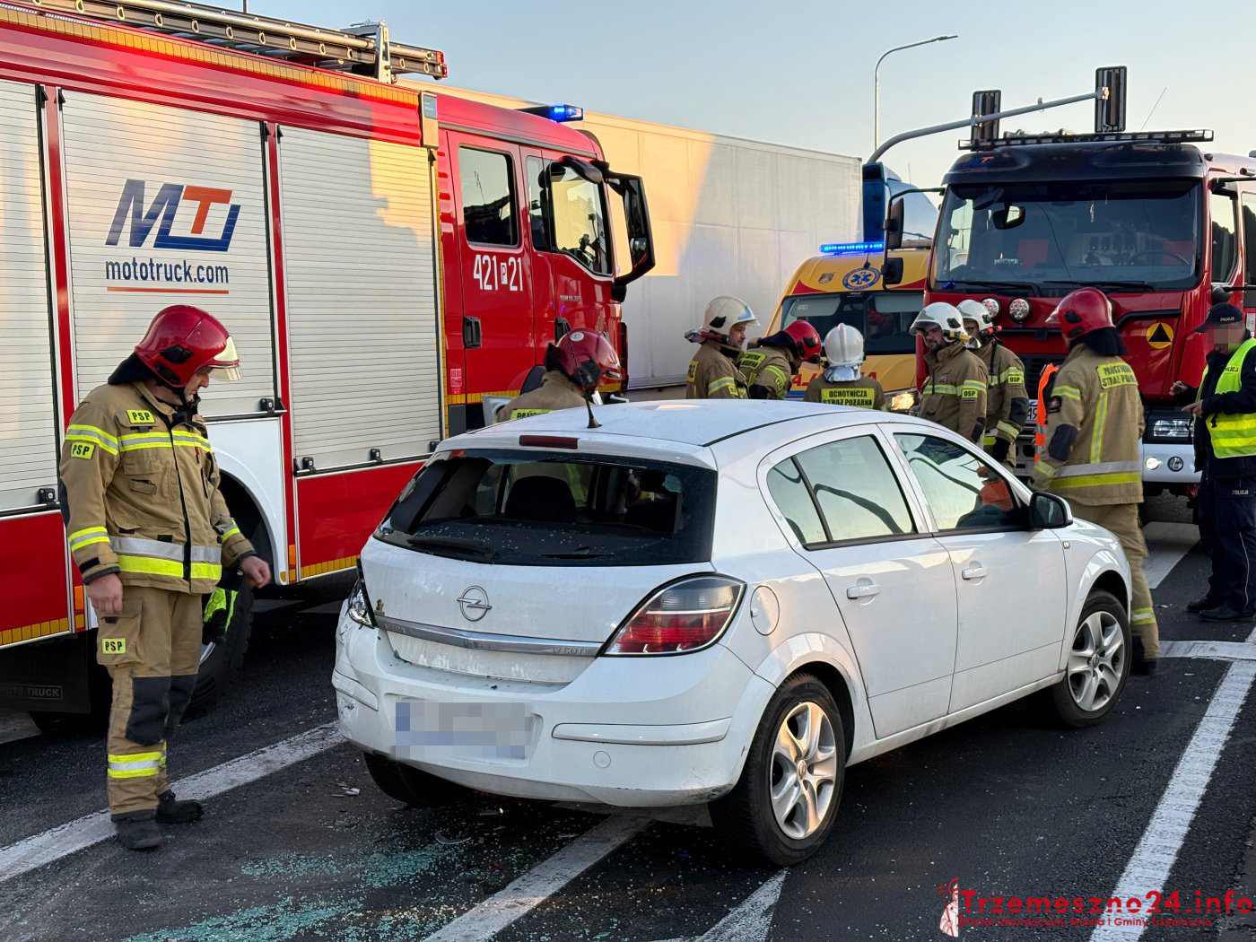 Kierujący ciężarowym MANem z naczepą, jadąc DK nr 15 od strony Gniezna w kierunku Mogilna, najechał na tył osobowego opla astra.