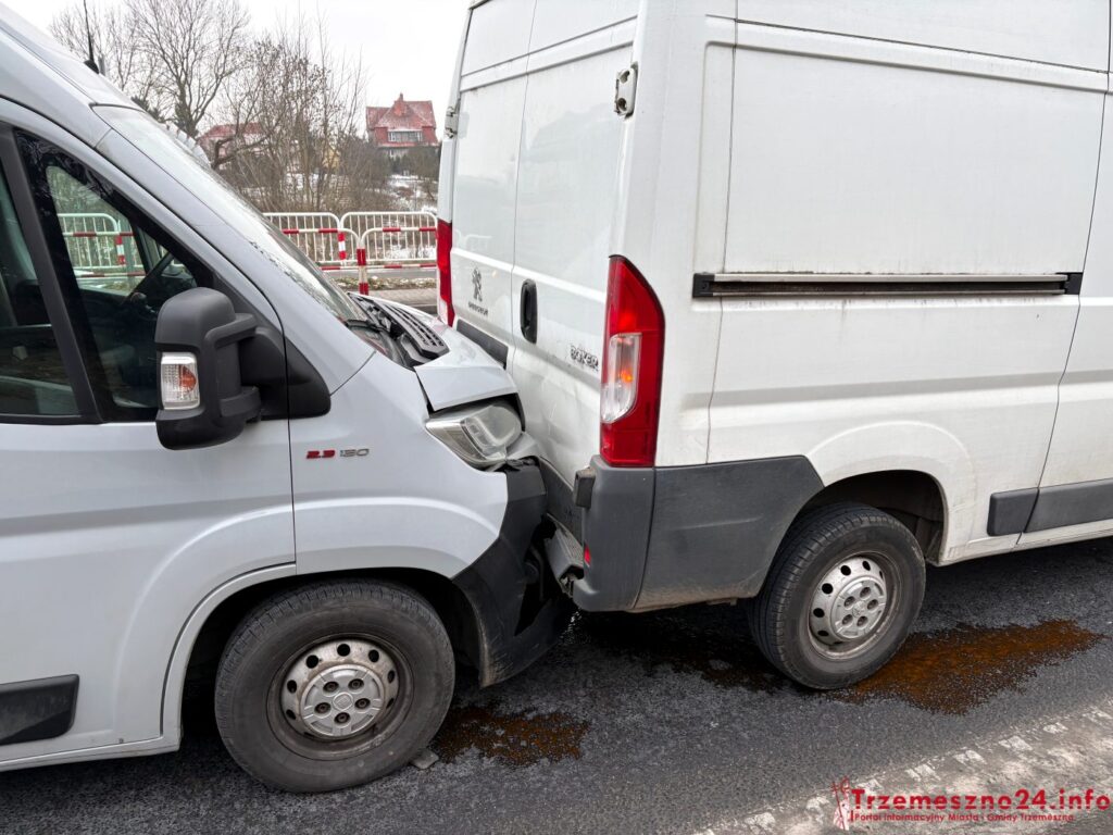 Do zderzenia z udziałem trzech pojazdów doszło dzisiaj (23 stycznia) – około godziny 14 – na ulicy Gnieźnieńskiej w Trzemesznie. Kierujący busem marki Fiat Ducato najechał na tył innego busa, Peugoeta Boxera.