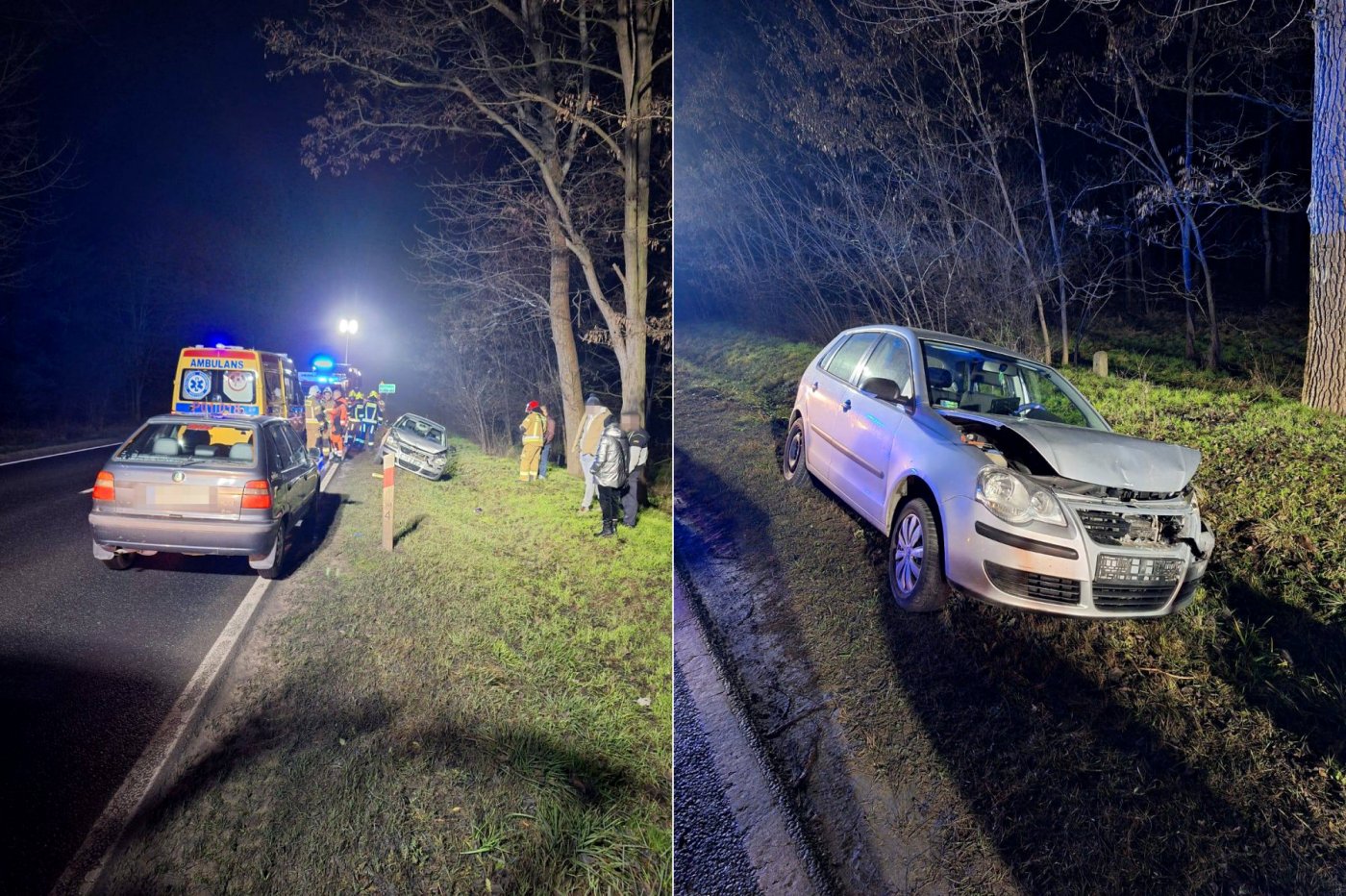 W wyniku zderzenia volkswagen przemieścił się na lewą stronę jezdni i zjechał do rowu.