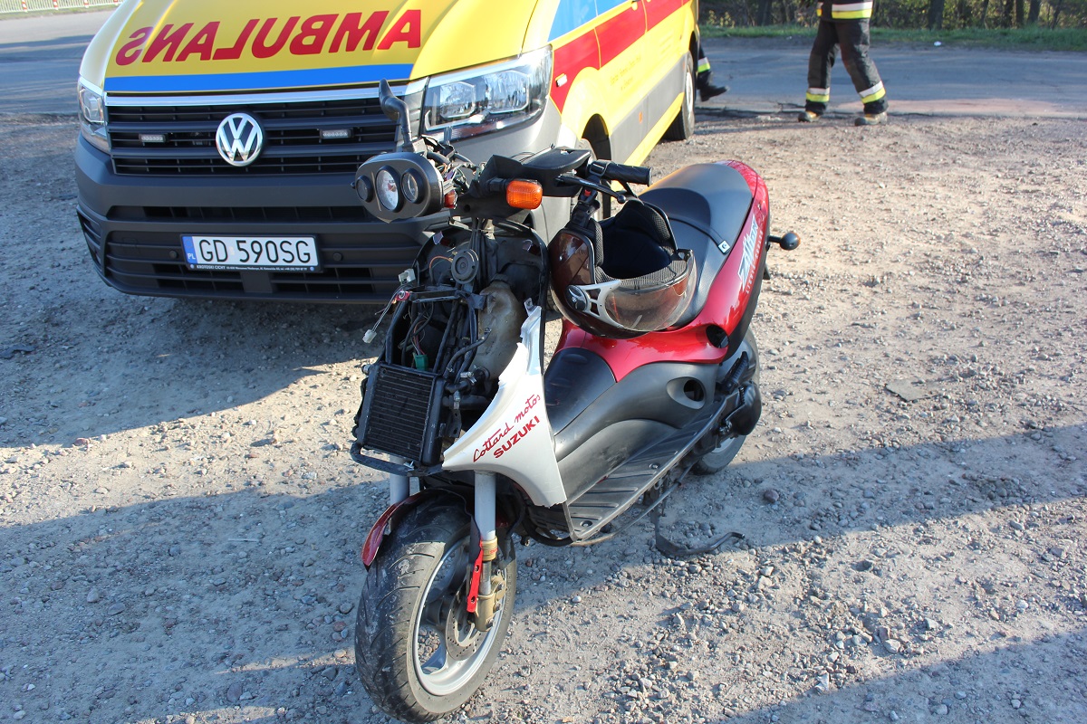 Zderzenie skutera i samochodu osobowego miało miejsce dzisiaj około godziny 7.30 w Rudkach.