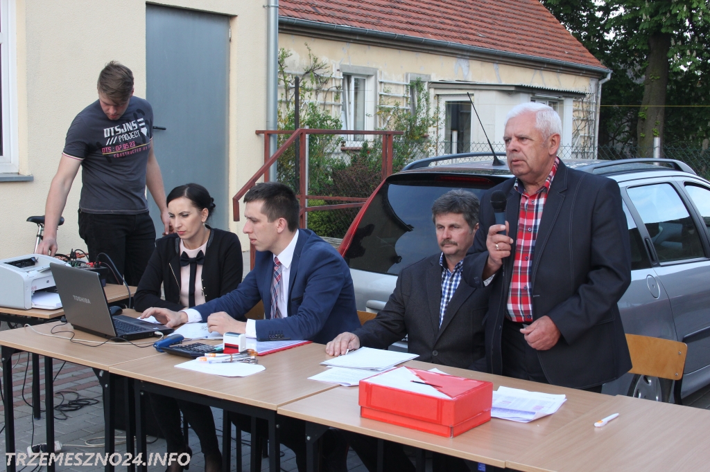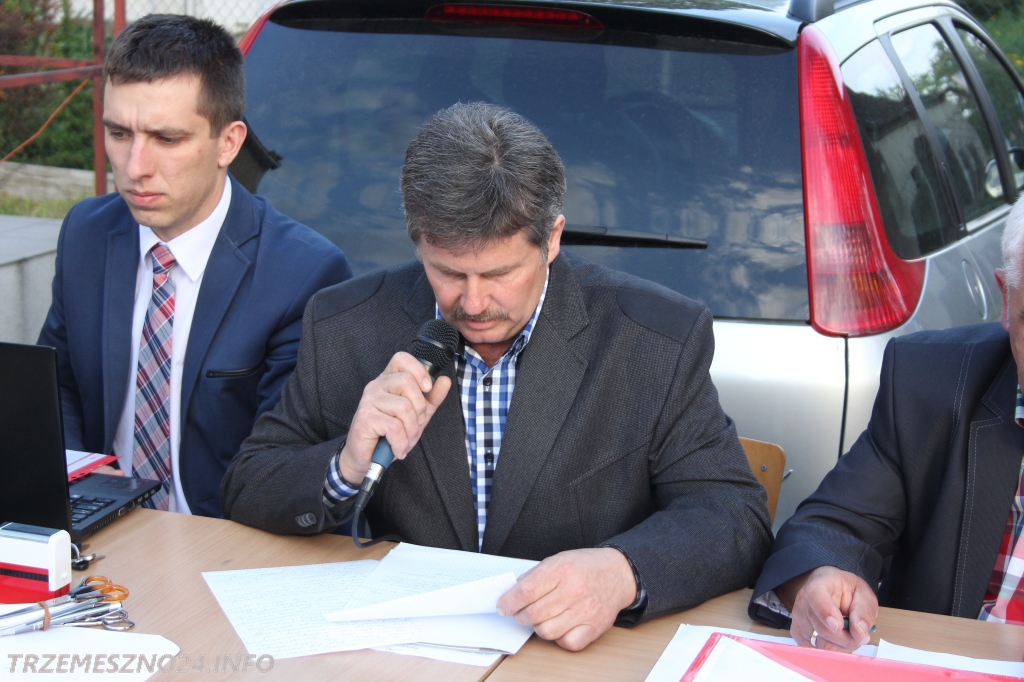 W takiej sytuacji obrady zorganizowano na świeżym powietrzu. Zebranie poprowadził przewodniczący Rady Miejskiej w Trzemesznie Ludwik Macioł. Towarzyszył mu przedstawiciel burmistrza, asystent Michał Michalak.