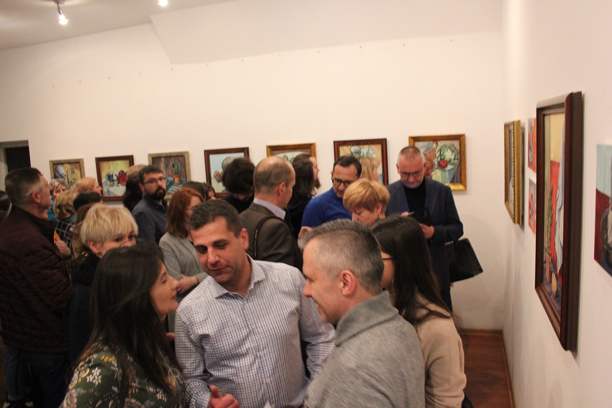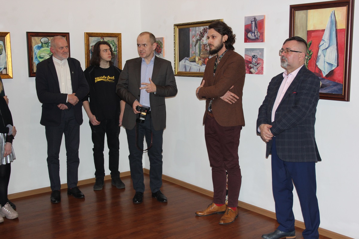 O pracy malarza opowiedział Marceli Konieczny. Jak zauważył, bohater wernisażu maluje zarówno portrety, pejzaże jak i martwą naturę, która dominuje na otwartej wczoraj wystawie. Sporym zainteresowaniem cieszyły się trzy portrety nieżyjącej już babci artysty Lubomiry Kmiecikowskiej, znanej wielu trzemesznianom.