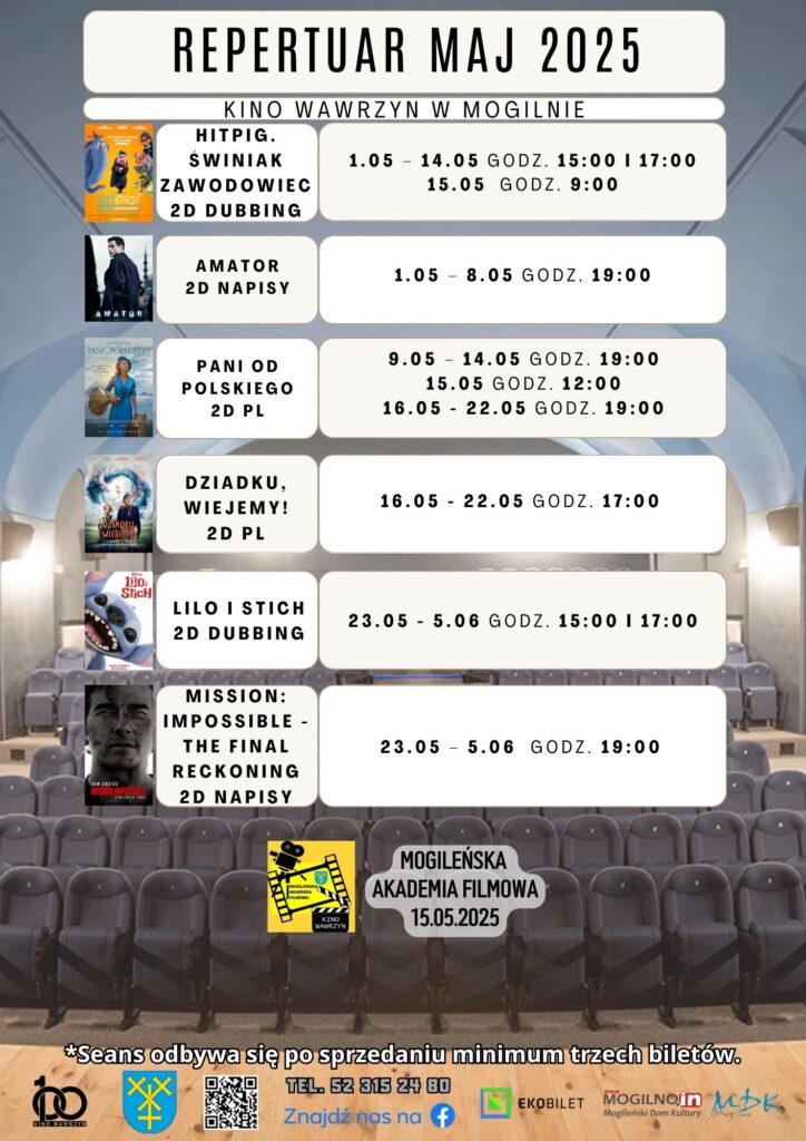 Mogileński Dom Kultury zaprasza do kina „Wawrzyn” na seanse filmowe w maju!