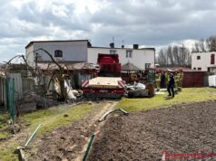 Strażacy uwolnili zwierzę przy pomocy sprzętu hydraulicznego. Po chwili sarna była już wolna, chociaż okaleczona przez wystający element płotu. Jak widać na zdjęciu, nie chciała oddać małego koca, przez który strażak przytrzymywał ją w czasie „operacji”.