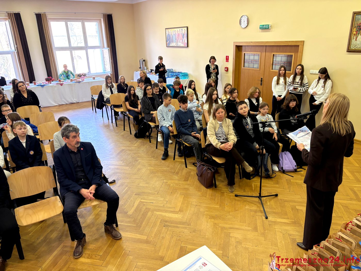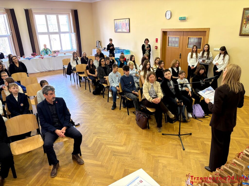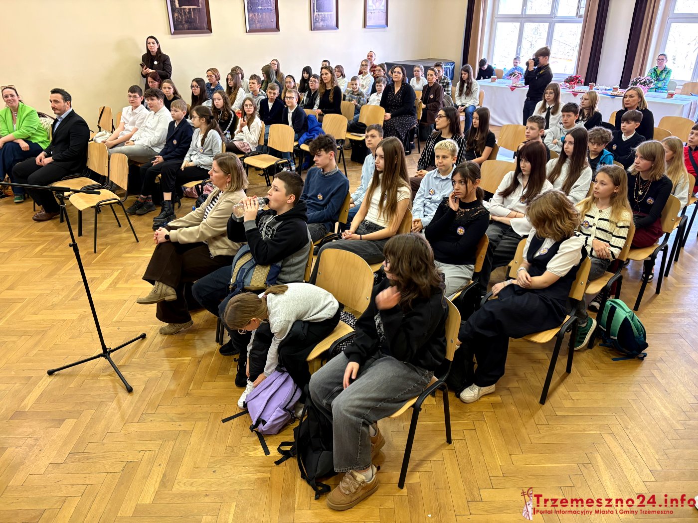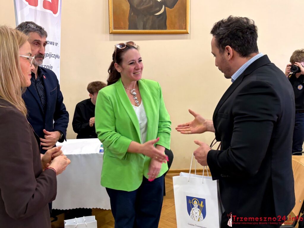W wydarzeniu uczestniczyli także goście, wśród nich Katarzyna Kurczoba – starszy wizytator nadzoru pedagogicznego oraz burmistrz Trzemeszna Kacper Lipiński.