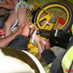 Sprawcą całego zamieszania okazała się 7 letnia Madzia, która chciała wypróbować swój rowerek w mieszkaniu. Nie wiadomo jak to zrobiła, ale w pewnym momencie jej noga znalazła się pomiędzy ramą i korbą pedału. Na nic zdały się wysiłki kilku osób – noga nadal tkwiła w rowerku.