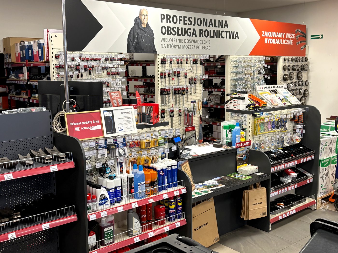 W AgroEko znajdziecie m.in. oleje i smary, filtry, łożyska, uszczelniacze, akumulatory, lampy, śruby i nakrętki, odzież i obuwie BHP, cześci do maszyn rolniczych oraz budowlanych.