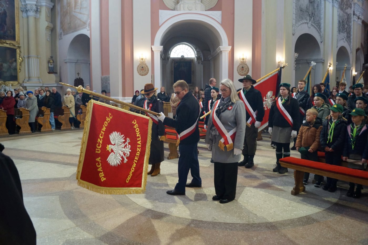 Wciągnięto flagę na maszt, złożono wiązanki kwiatów, po czym zebrani – z pocztami sztandarowymi na czele – przeszli do bazyliki. Tam została odprawiona uroczysta msza święta za Ojczyznę.