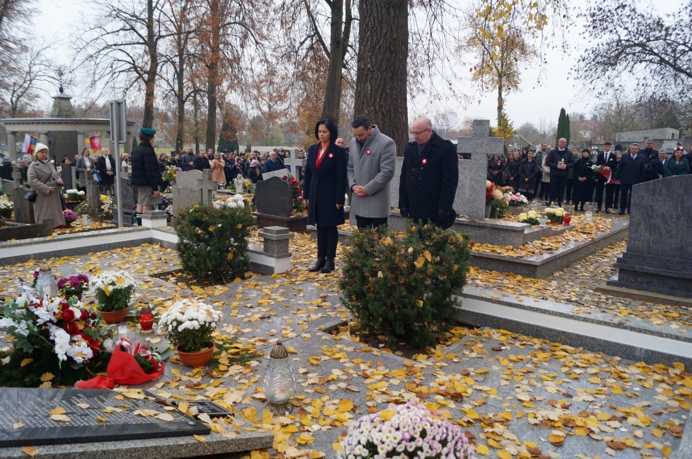 Dalsza część obchodów odbywała się na cmentarzu parafialnym, gdzie w miejscach pamięci narodowej złożono kwiaty i znicze.