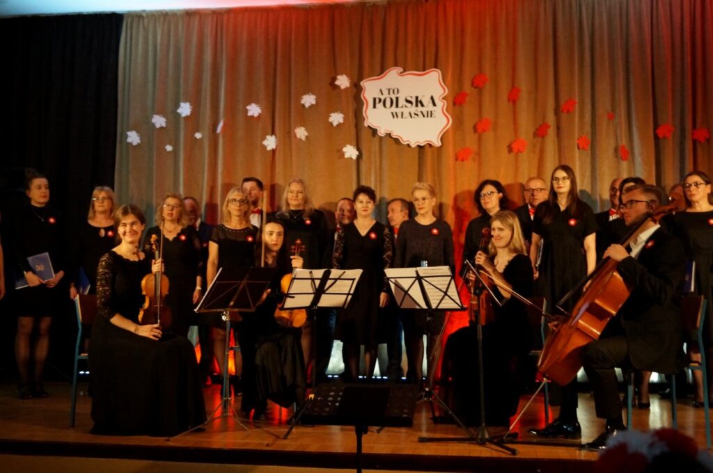 Na zakończenie tej części uroczystości burmistrz Kacper Lipiński zaprosił mieszkańców do auli Zespołu Szkół Ogólnokształcących i Zawodowych. Tam publiczność mogła podziwiać występ chóru działającego przy Domu Kultury, śpiewającego patriotyczne pieśni przy akompaniamencie kwartetu smyczkowego Flumen Quartet. Dyrygował Sławomir Paluch, dyrektor DK.