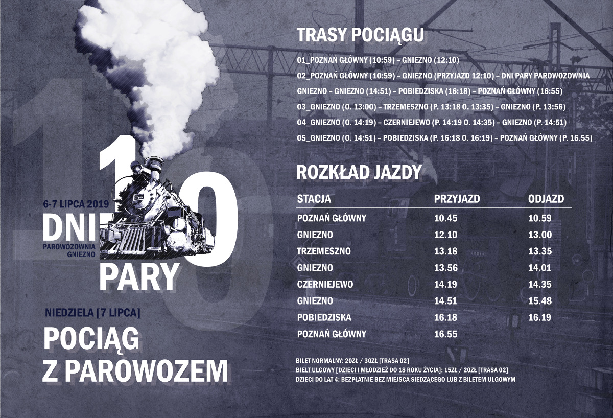 Przedsprzedaż (gwarantująca miejsce w pociągu) odbywa się w gnieźnieńskiej parowozowni dzisiaj (3.07) oraz w piątek (5.07) w godzinach od 18:00 do 20:00.