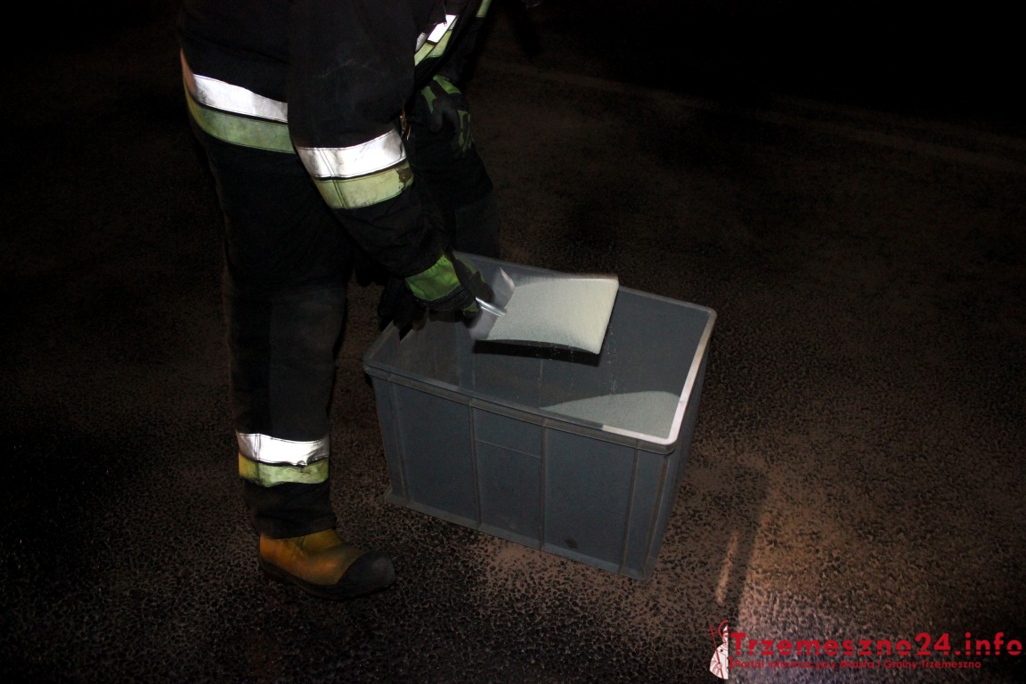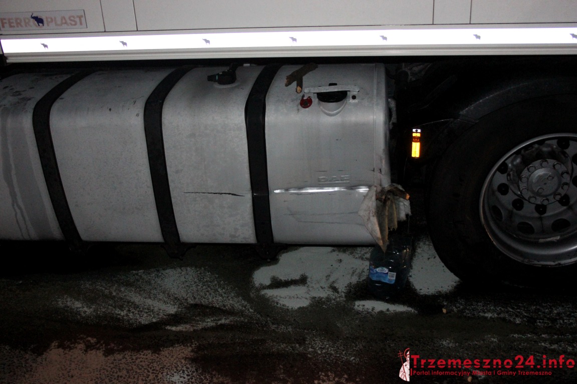 W wyniku kolizji nikt nie odniósł żadnych obrażeń. Problemem był natomiast olej napędowy, który wyciekł z uszkodzonego zbiornika ciągnika siodłowego. Ponad 100 metrowy odcinek jezdni zabezpieczyli strażacy z Gniezna i Trzemeszna, posypując drogę sorbentem.
