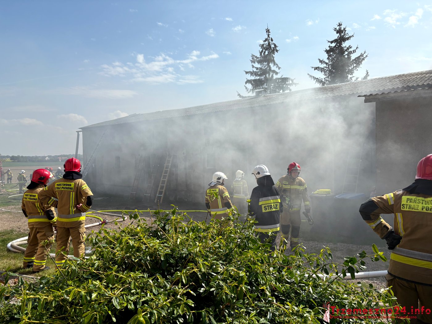 Dzięki sprawnej akcji ogień szybko opanowano. Spaliła się słoma, zmagazynowana w budynku. W wyniku pożaru nie ucierpiały żadne osoby i zwierzęta.