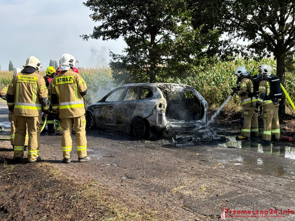 Po dotarciu jednostek okazało się, że pojazd marki volvo jest już w pełni objęty pożarem. Ogień został szybko ugaszony, jednak samochód spłonął doszczętnie. Kierującego przebadali ratownicy medyczni – nie wymagał on hospitalizacji, nie odniósł żadnych obrażeń.