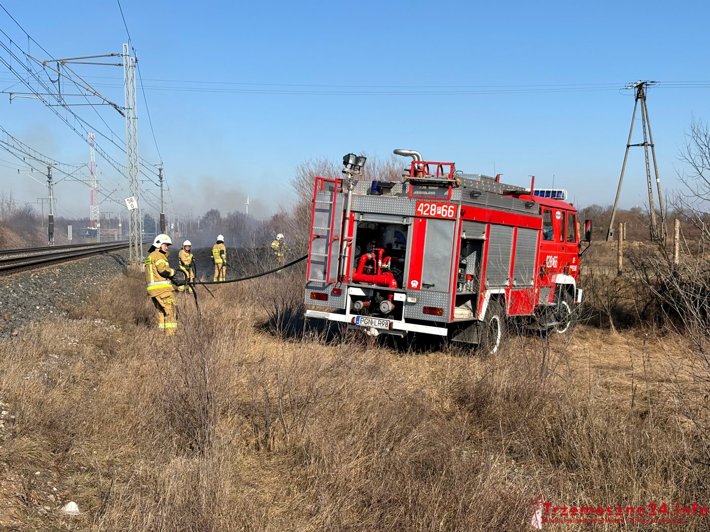 Na miejsce wezwano zastępy z OSP w Trzemesznie, OSP w Wymysłowie oraz OSP w Strzyżewie Smykowym. Jak się okazało, ogniem objęty był pas o długości około 200 x 15 metrów.