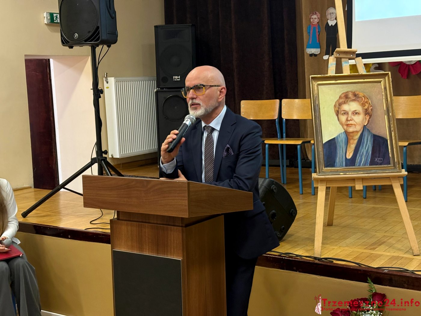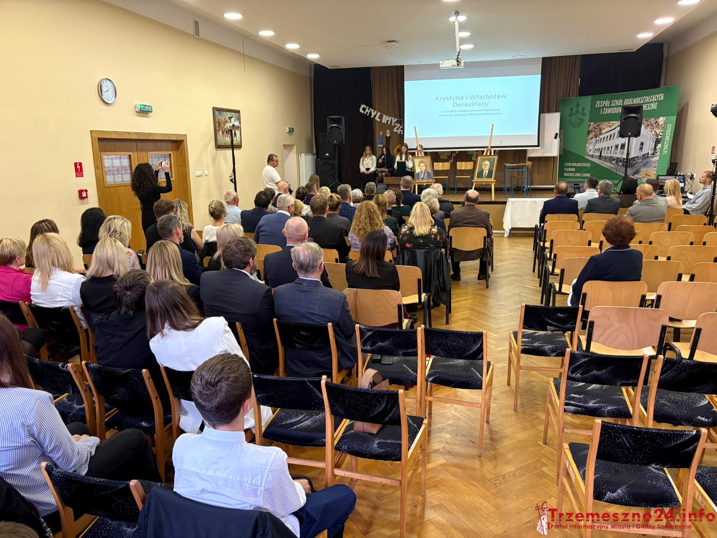 Sylwetkę patronów przedstawiła Beata Szymańska, nauczycielka i inicjatorka wydarzenia. „Państwo Derezińscy przyszli na świat w latach 30-tych ubiegłego wieku w okolicach Żnina. Oboje jako dzieci doświadczyli rzeczywistości wojennej i wszelkich tego konsekwencji. Oboje ukończyli studia na Uniwersytecie Mikołaja Kopernika w Toruniu i oboje od początku lat 60-tych pracowali jako nauczyciele chemii w trzemeszeńskim liceum. Pani Krystyna przez pewien czas uczyła również matematyki oraz fizyki. Całe swoje życie zawodowe poświecili nauczaniu trzemeszeńskiej młodzieży, a pracownie chemiczną stworzyli od podstaw. Przygotowywali wiele pokoleń uczniów do podjęcia studiów na najbardziej wymagających kierunkach uniwersyteckich” – mówiła B. Szymańska.
