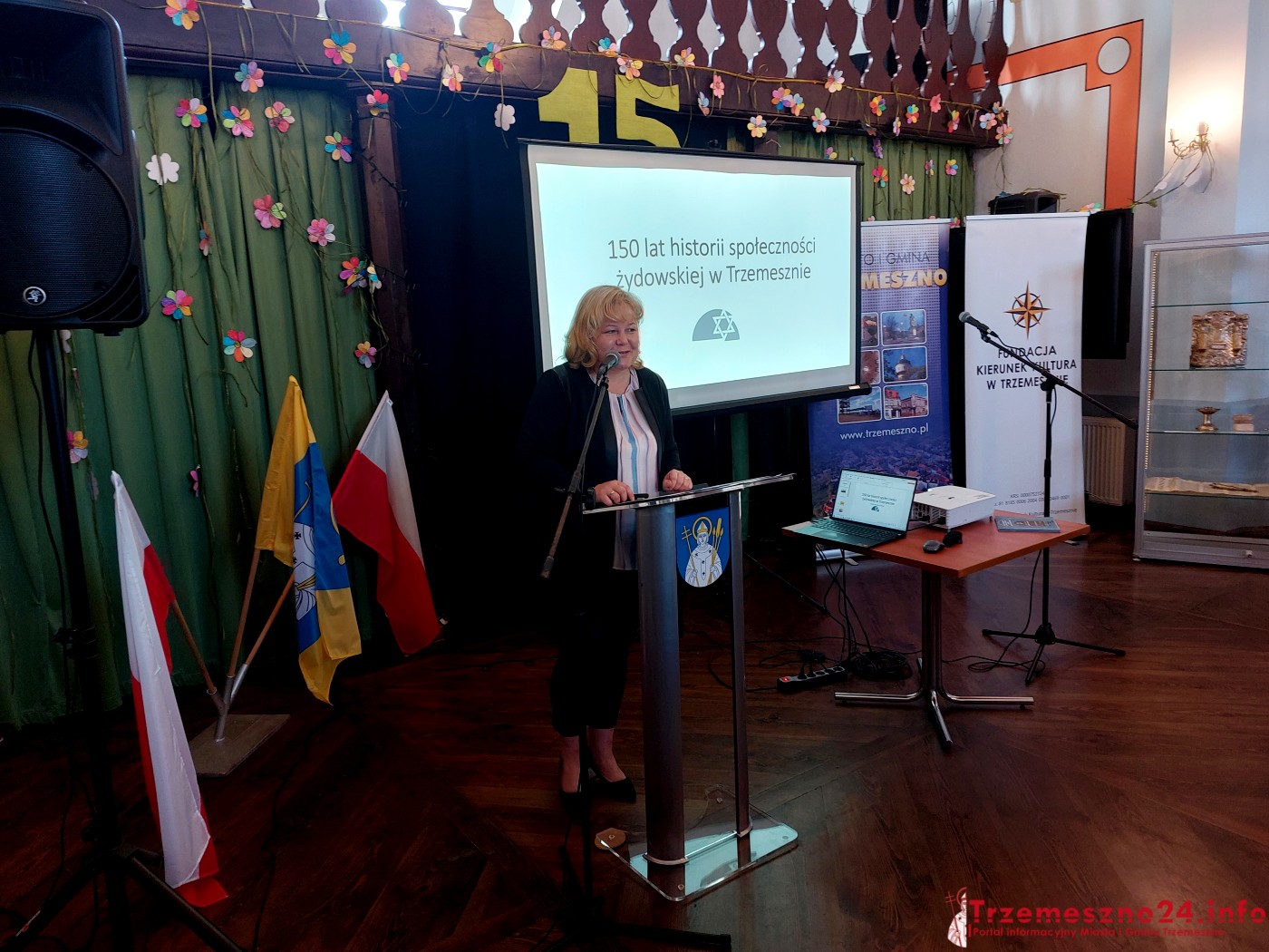 Dalsza część uroczystości miała miejsce w sali Środowiskowego Domu Samopomocy. Tam Katarzyna Sudaj zapoznała zebranych z historią społeczności żydowskiej Trzemeszna, a wiceburmistrz Dariusz Jankowski przedstawił przebieg i zakres prac wykonanych przez społeczników i samorząd.