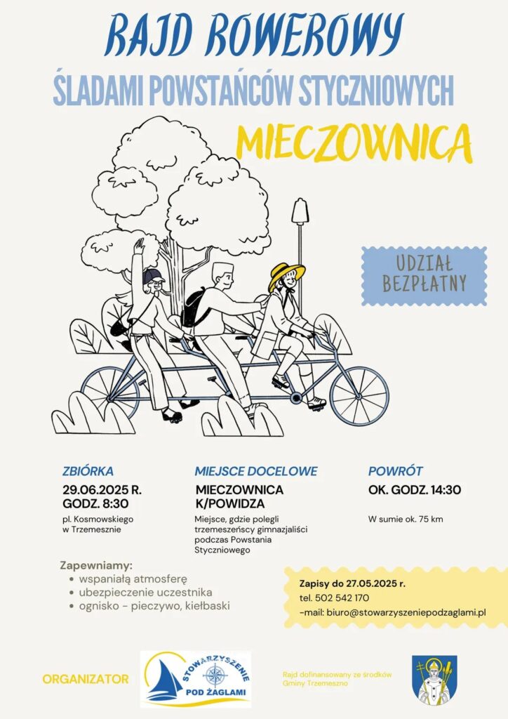 Stowarzyszenie „Pod Żaglami” zaprasza wszystkich miłośników historii i aktywnego wypoczynku na rajd rowerowy śladami Powstańców Styczniowych. Odbędzie się on już w najbliższą niedzielę (29 czerwca).