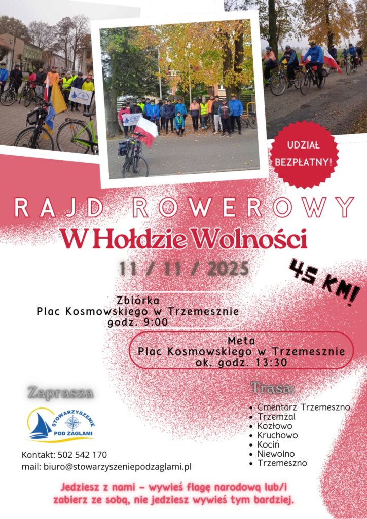 Kolejna edycja rajdu rowerowego „W Hołdzie Wolności” odbędzie się już za tydzień, 11 listopada. Wydarzenie organizowane jest z okazji Narodowego Święta Niepodległośc. Udział w rajdzie jest bezpłatny.