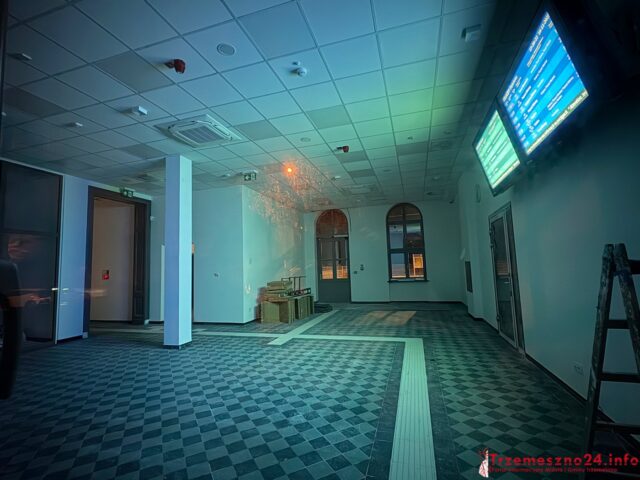 Wewnątrz budynku zainstalowane są już wyświetlacze. Działają też zegary, a na zewnętrznej cześci budynku świecą się napisy. Zapraszamy do obejrzenia galerii zdjęć, wykonanej dzisiaj.