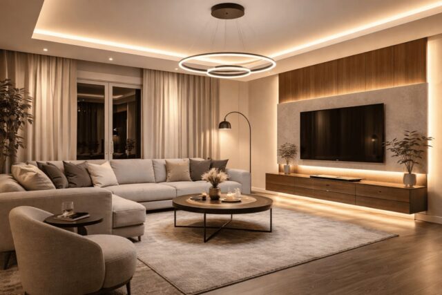 Nowoczesny salon wymaga równowagi między nastrojem a funkcjonalnością. Zbyt słabe światło utrudnia czytanie, natomiast nadmiar może męczyć wzrok. Dlatego tak istotna jest możliwość regulacji. Temperatura barwowa wpływa na odbiór kolorów i atmosferę. Ciepłe odcienie sprzyjają odpoczynkowi. Neutralne lepiej sprawdzają się podczas pracy. Znaczenie ma również współczynnik oddawania barw. Wyższe wartości pozwalają wierniej prezentować materiały wykończeniowe. Ma to duże znaczenie w starannie zaprojektowanych wnętrzach. W praktyce często stosuje się kilka typów opraw jednocześnie, między innymi: