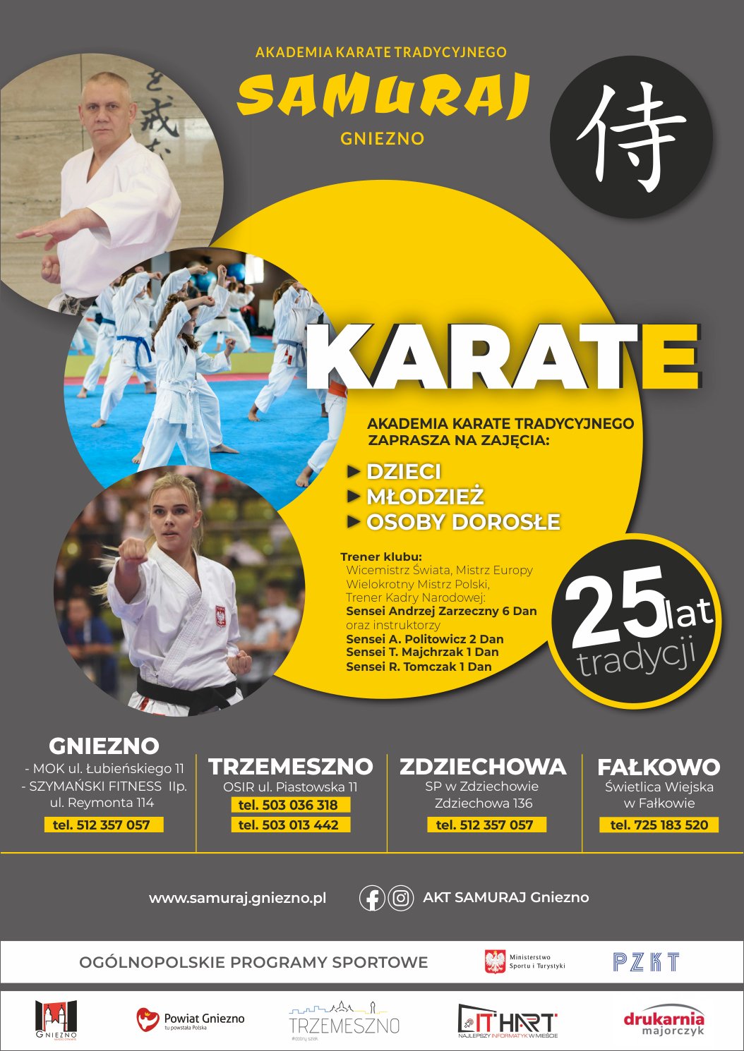 Sekcja karate w Trzemesznie (przy Akademii Karate Tradycyjnego SAMURAJ Gniezno) prowadzi nabór do grupy początkującej, średniozaawansowanej oraz zaawansowanej. Do udziału w treningach zaproszeni są dzieci, młodzież oraz osoby dorosłe – zarówno ci, którzy dopiero zaczynają swoją przygodę ze sztukami walki, jak i osoby mające wcześniejsze doświadczenie w karate.