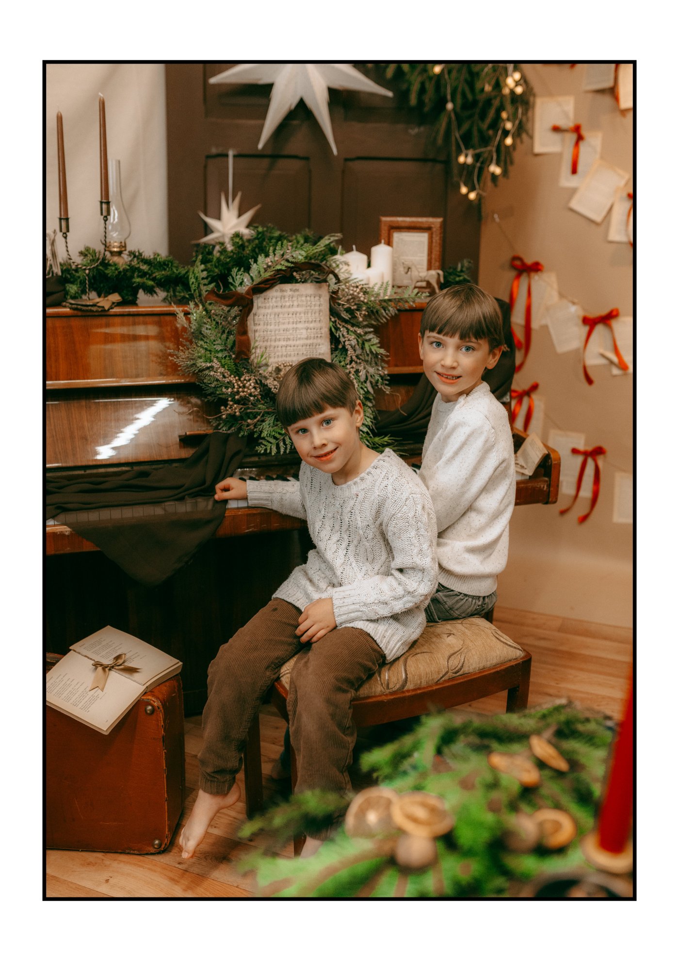 Świąteczne sesje w klimacie vintage to wspomnienia jak z filmowych kadrów — pełne światła, bliskości i ciepła. To przestrzeń dla rodzin, par, przyjaciół i czworonożnych towarzyszy — bo każda opowieść jest wyjątkowa.