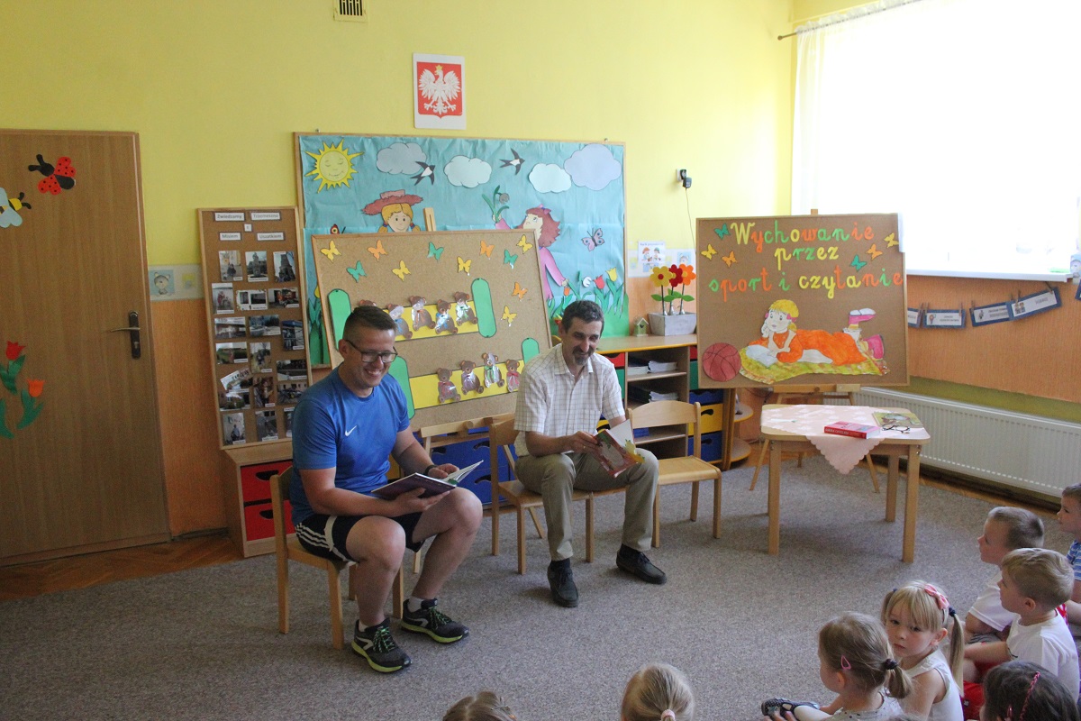 Przeczytali bajki Jana Brzechwy i Juliana Tuwima. Zanim jednak przystąpili do czytania, porozmawiali z dziećmi na temat korzyści płynących z uprawiania sportu i wszelkich rodzajów rekreacji ruchowej.