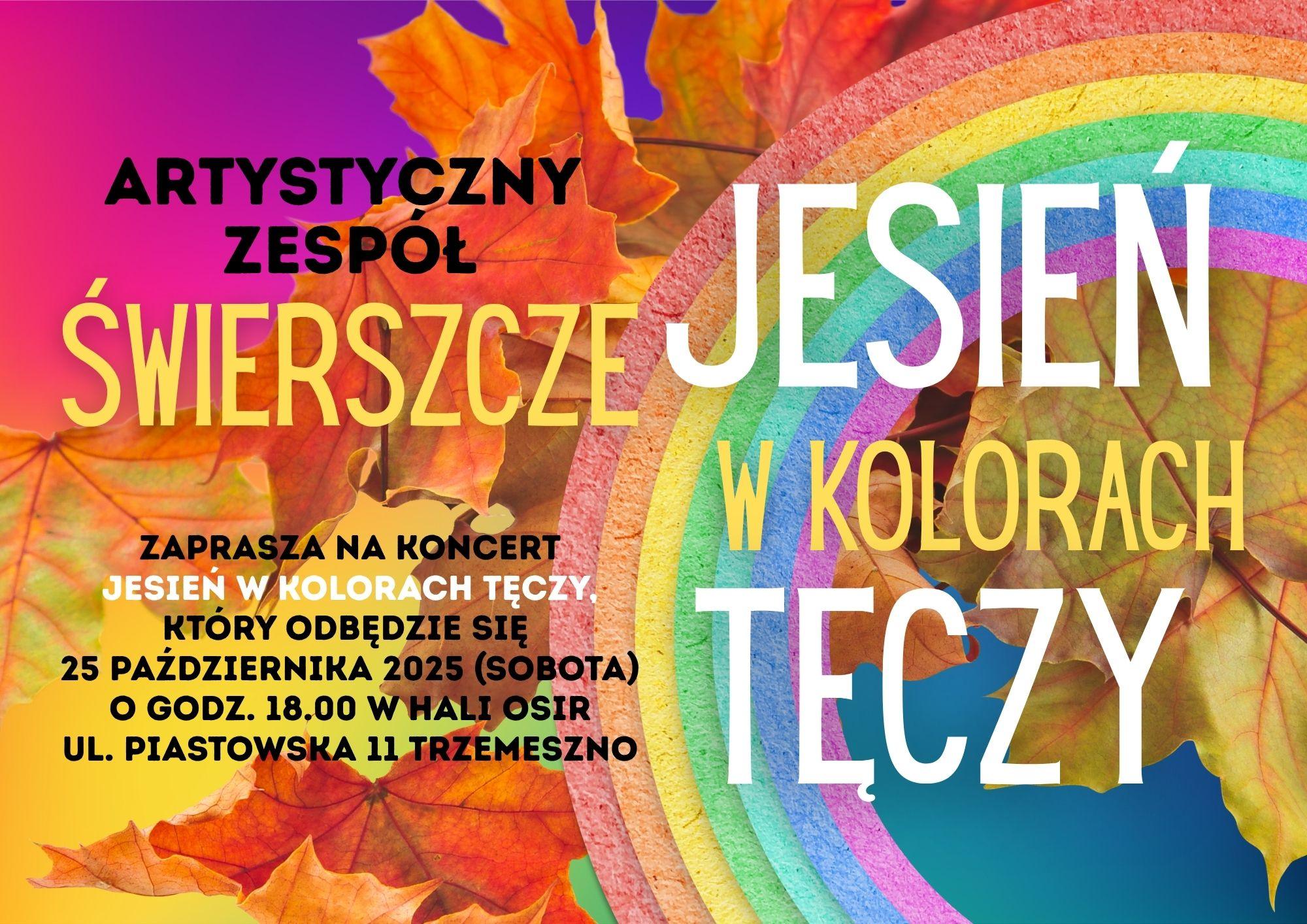Już 25 października (w sobotę) – w hali Ośrodka Sportu i Rekreacji w Trzemesznie – odbędzie się koncert Artystycznego Zespołu Świerszcze pt. „Jesień w kolorach tęczy”.