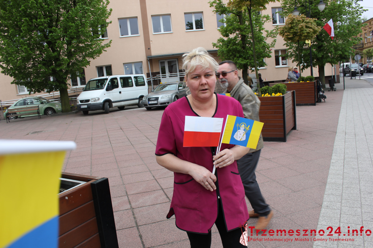 Obchodzony dzisiaj Dzień Flagi Rzeczypospolitej Polskiej był okazją, aby przypomnieć mieszkańcom Trzemeszna o znaczeniu symboli narodowych. Przechodnie, którzy w godzinach południowych przebywali w okolicy placu Hipolita Cegielskiego otrzymywali małe flagi – z jednej strony w barwach narodowych, z drugiej z herbem Trzemeszna.
