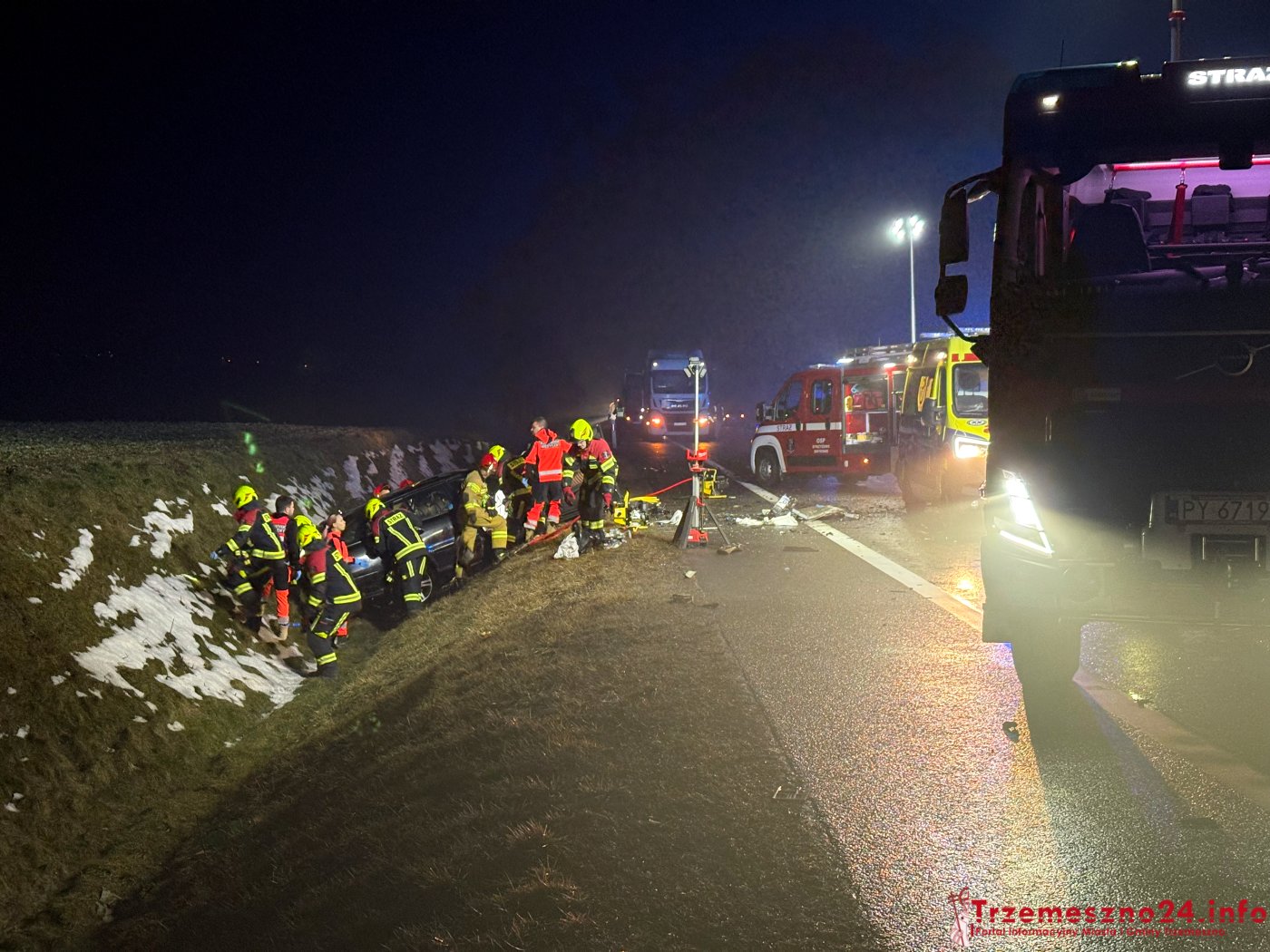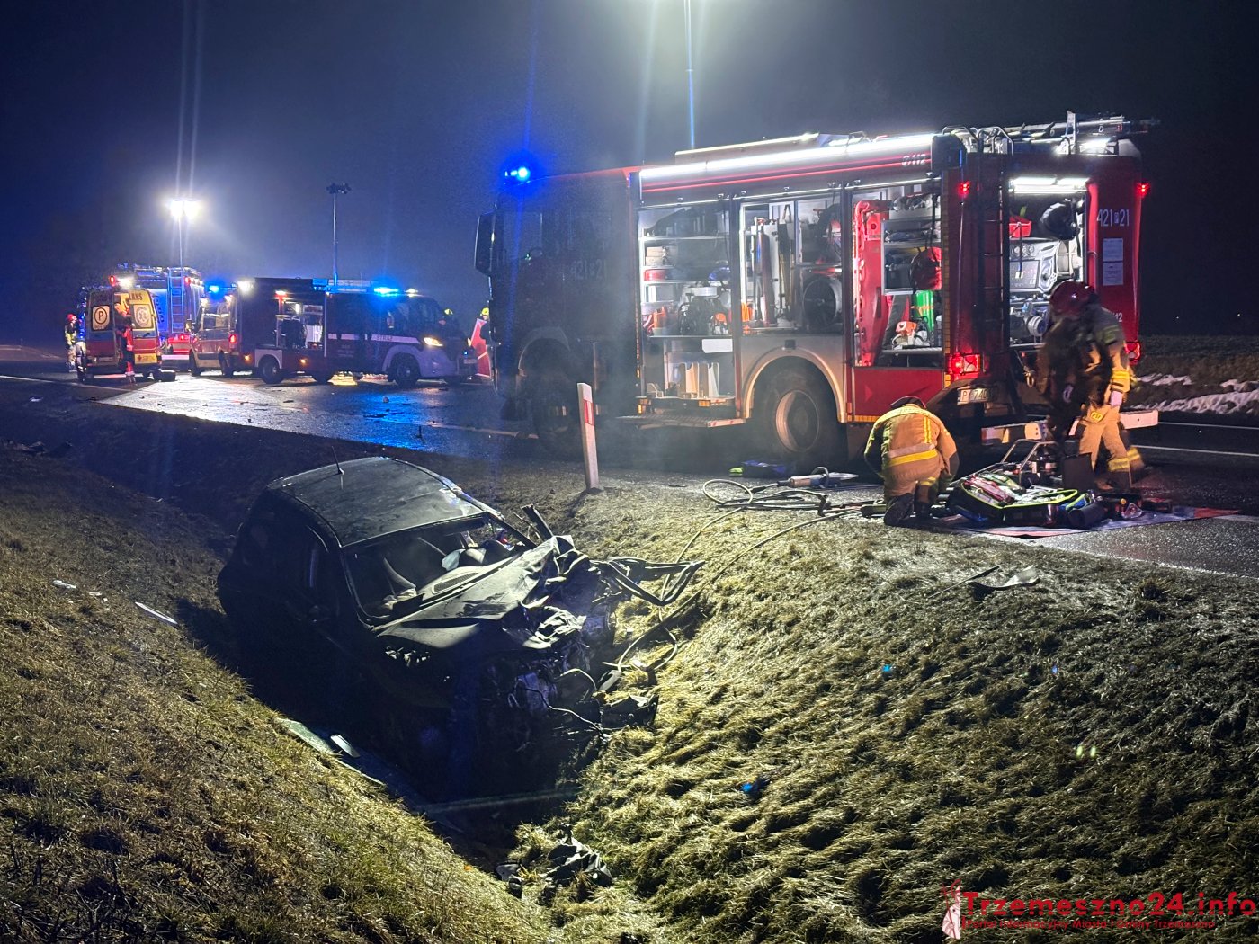 W obu pojazdach podróżowały łącznie trzy osoby, w tym jedno dziecko. W celu wydobycia poszkodowanych strażacy musieli użyć specjalistycznych narzędzi hydraulicznych. Do zdarzenia doszło w trudnych warunkach drogowych, w gęstej mgle.