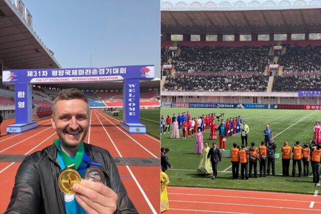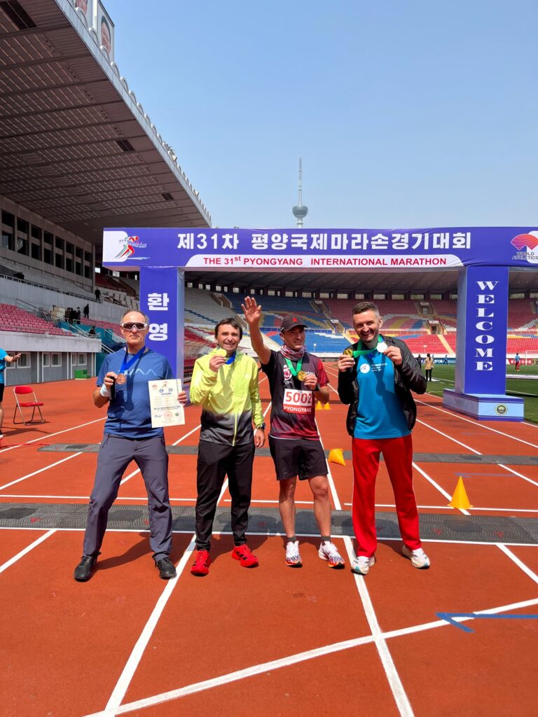 „Sam maraton to jedna dość wymagająca pętla, z kilkoma podbiegami, nawrotem po 21km, biegnąca przez centrum Pjongjangu, gdzie podczas biegu mija się główne atrakcje a wracając na stadion finiszuje się okrążeniem na bieżni i przy wsparciu ogromnego tłumu, zgromadzonych na trybunach Koreańczyków z Północy — niektórzy w maskach jakie pamiętamy z czasów pandemii — witających biegaczy i pozdrawianych przez zagranicznych uczestników” – przekazał nam Ł. Urbaniak.