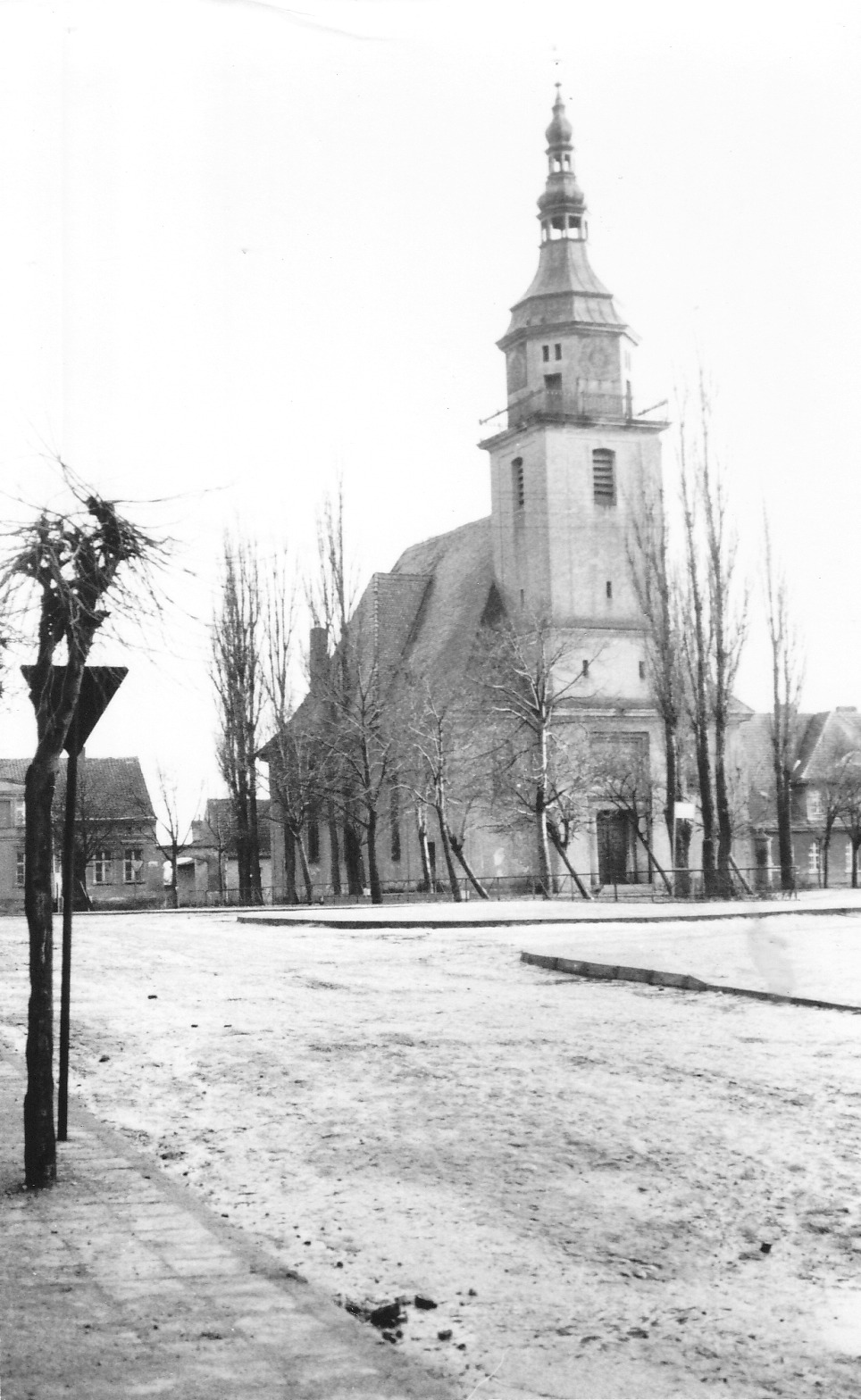 Wybrane przez nas zdjęcia związane są tematycznie z nieistniejącym już, rozebranym w 1971 roku kościołem ewangelickim. S. Majewski zdawał sobie sprawę, że za chwilę, na zawsze zniknie jeden z bardzo charakterystycznych obiektów Trzemeszna. Postanowił więc zachować co się da. Sfotografował kościół przed rozbiórką, a ponadto wspiął się na jego wieżę, aby stamtąd uwiecznić miasto. Są to jedne z bardzo nielicznych ujęć Trzemeszna z góry z tamtych czasów.