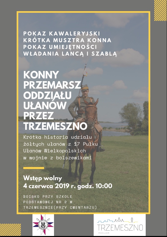 W Trzemesznie już jutro – 4 czerwca – o godzinie 10:00 na boisku Szkoły Podstawowej nr 2 (przy cmentarzu) przeprowadzony zostanie pokaz kawaleryjski czyli wykonanie krótkiej musztry konnej oraz umiejętność władania lancą i szablą.